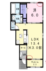 | 設 備 | バス・トイレ別 エアコン付 追炊風呂 室内洗置 フローリング CATV ペット可 1階 礼金なし 敷金なし インターネット対応 洗面所 築5年以内 築10年以内 |