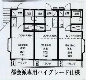 | 設 備 | バス・トイレ別 エアコン付 2階以上 ロフト付 |